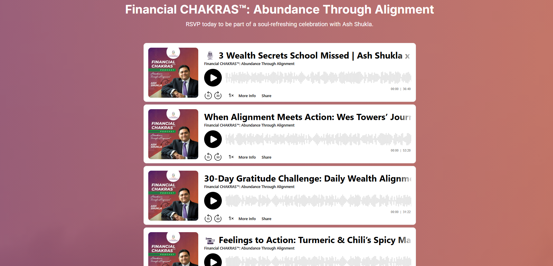 Each episode is a guided experience through the Financial CHAKRAS™, helping you unlock abundance across all five core areas of your life and business.